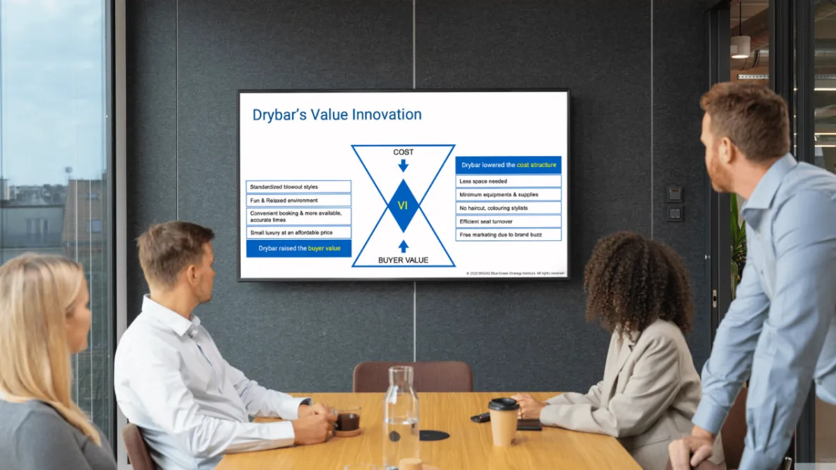 You’ll embrace the foundations of blue ocean strategy: value innovation - the simultaneous pursuit of differentiation and low cost, resulting in a leap in value for both you and your customers.